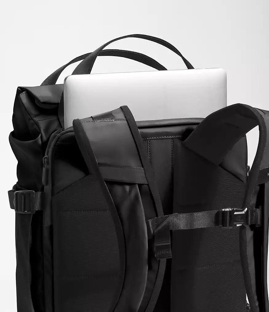 - Rolltop closure with magnetic FIDLOCK® buckle provides additional water resistance