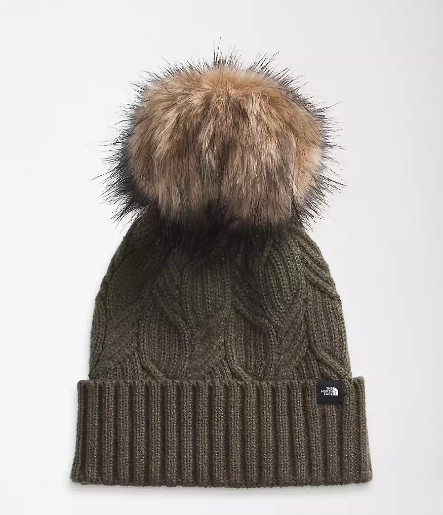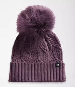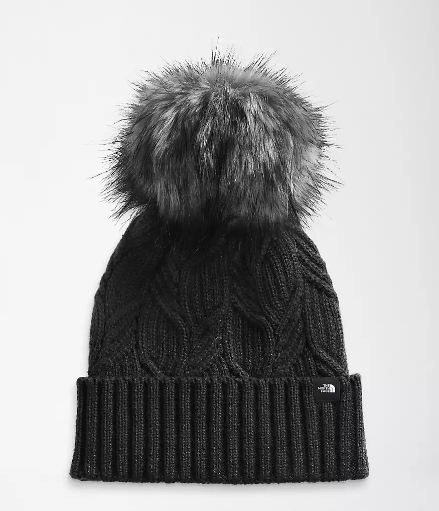 Cable-knit beanie with a pom for a classic, cold-weather look.