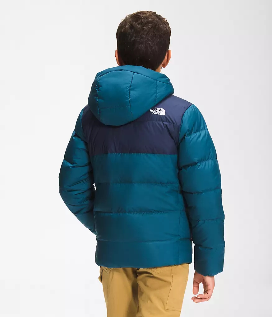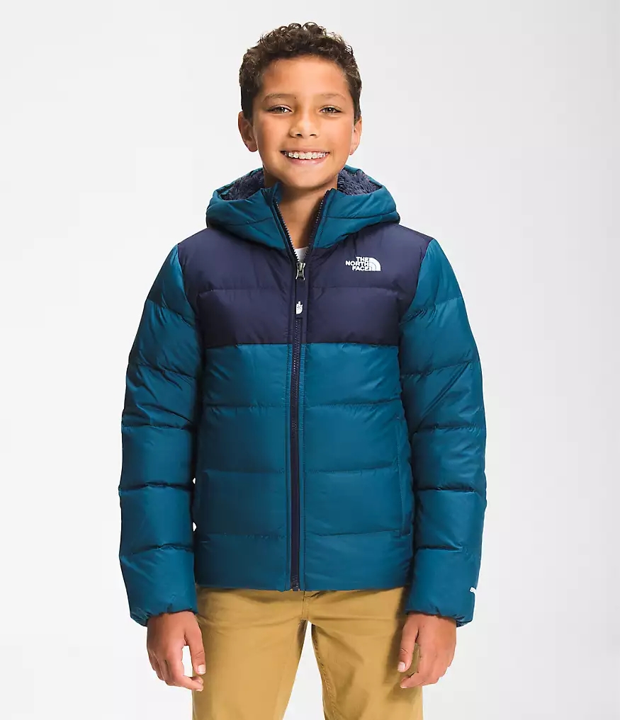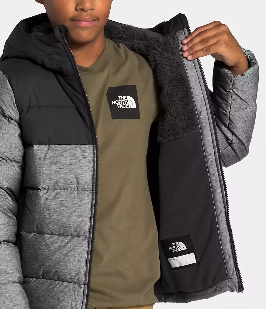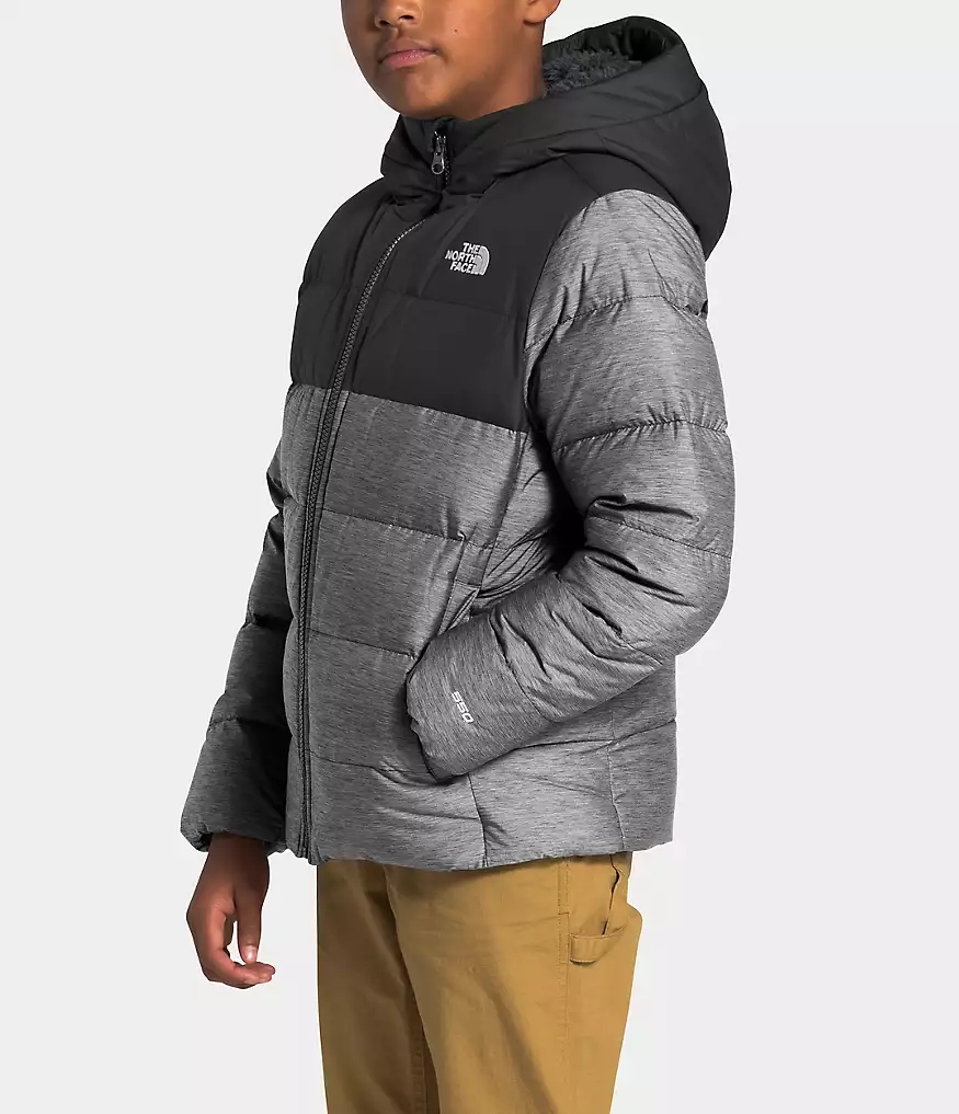 The updated Youth Moondoggy Hoodie is water-repellant, insulated with 550-fill Down and features a Sherpa-fleece lined hood and shoulders for all-conditions coziness.